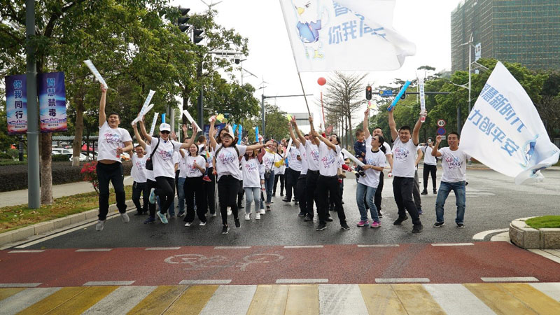 活动现场,黄埔区禁毒办和黄埔区禁毒协会联合主办的“智慧禁毒你我同行”活动同步上线,50多名由黄埔区禁毒协会成员组成的健步走方阵为现场增添了浓厚的公益色彩,齐齐倡导健康生活、禁绝毒品。