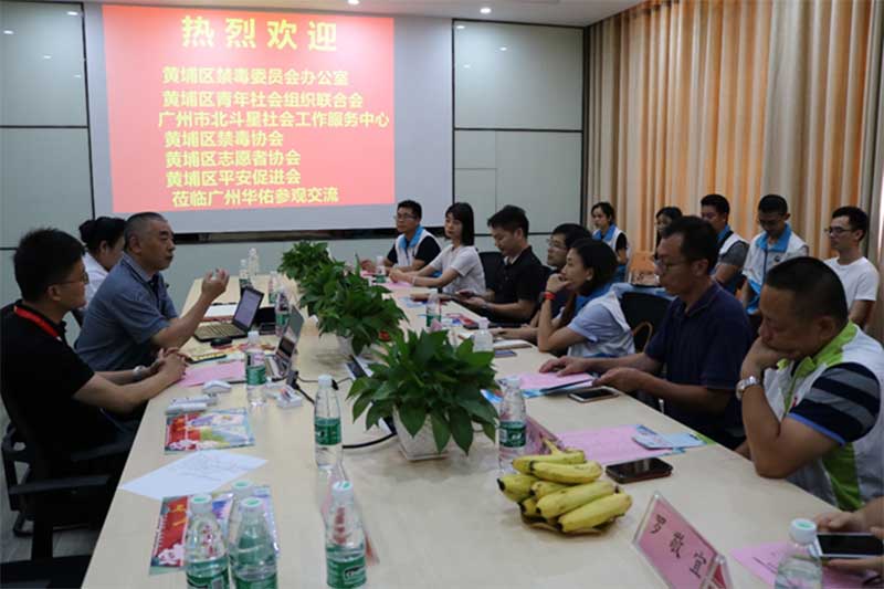2019年6月19日下午,广州市黄浦区禁毒办、黄埔区禁毒协会、黄埔区青年社工联合会、黄埔区志愿者协会、黄埔区平安促进会、花都区北斗星社工机构一行代表莅临广州华佑医院参观交流,受到了首席医疗官李晓东教授、广州华佑医院院长杨勇热情接待。